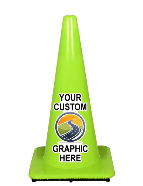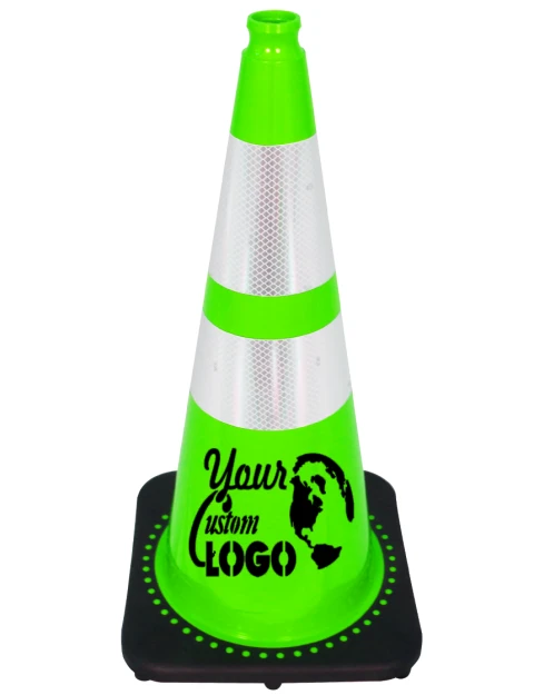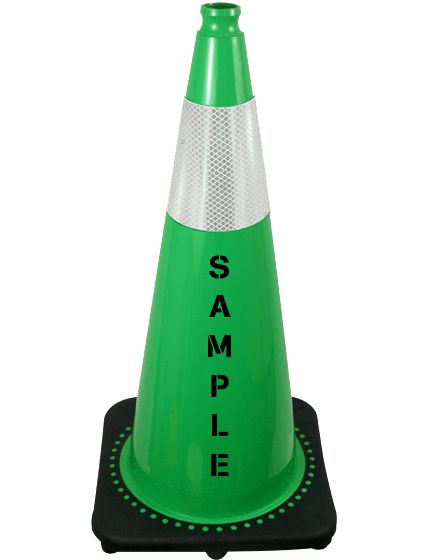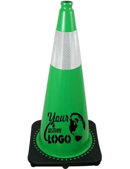 28" Green Traffic Cone w/6" & 4" Reflective Collars w/ Full Color Graphic