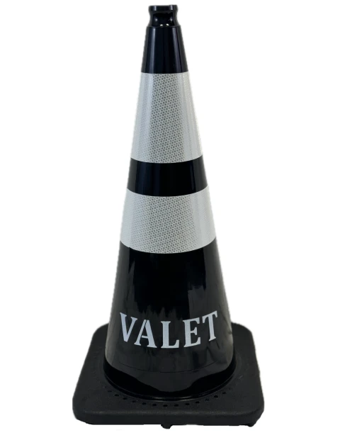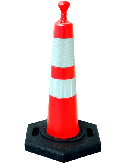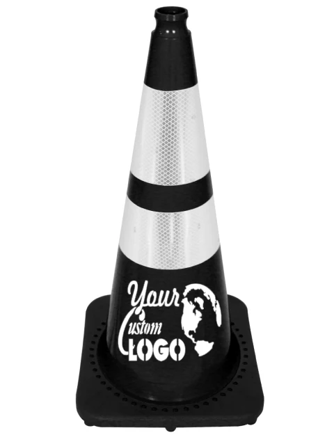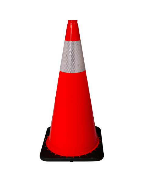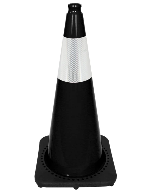 White 28" 7 lbs JBC Black Base Traffic Cone w/ 6" & 4" Reflective Collars