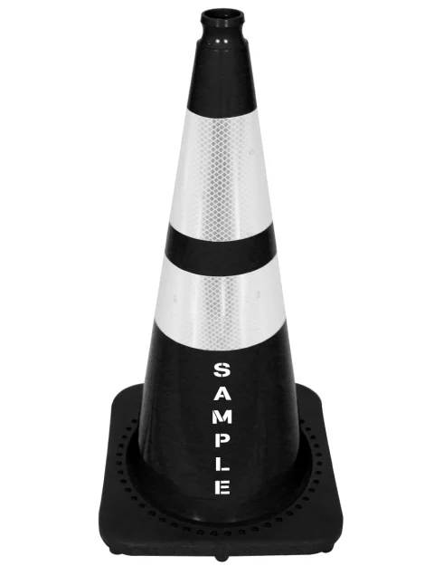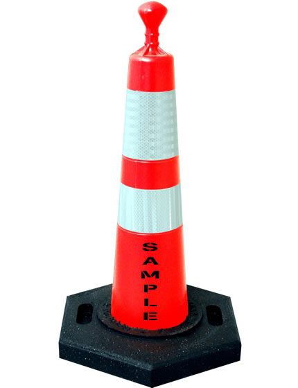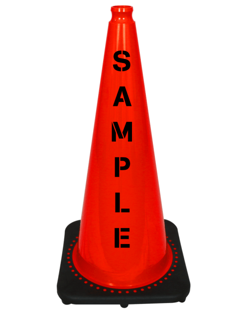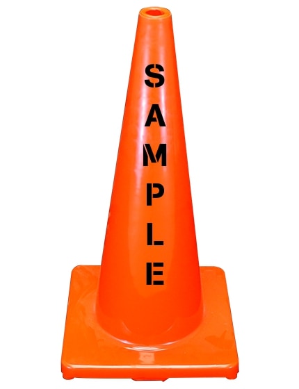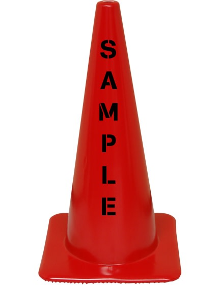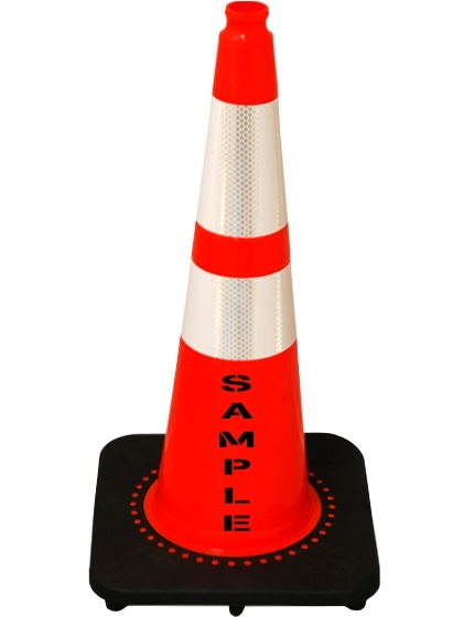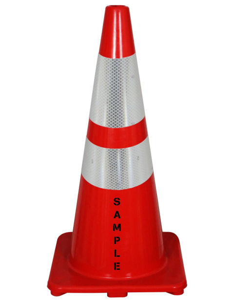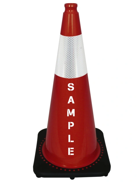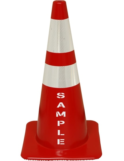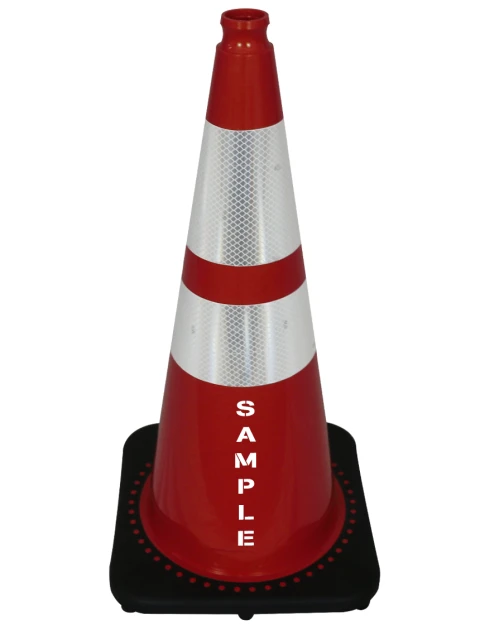Red 28" Traffic Cone w/ 6" & 4" Reflective Collars &Double Sided Custom Lettering