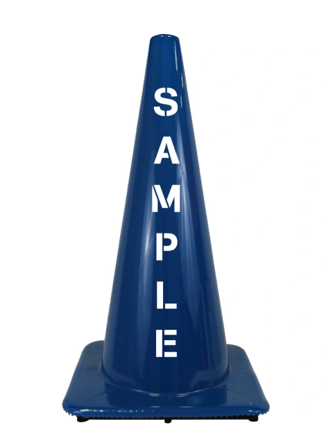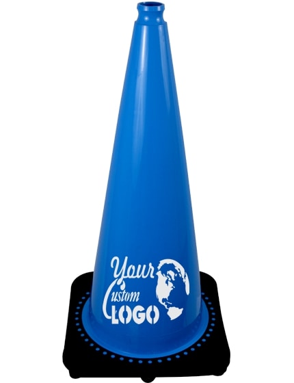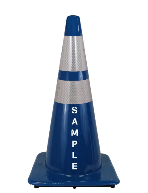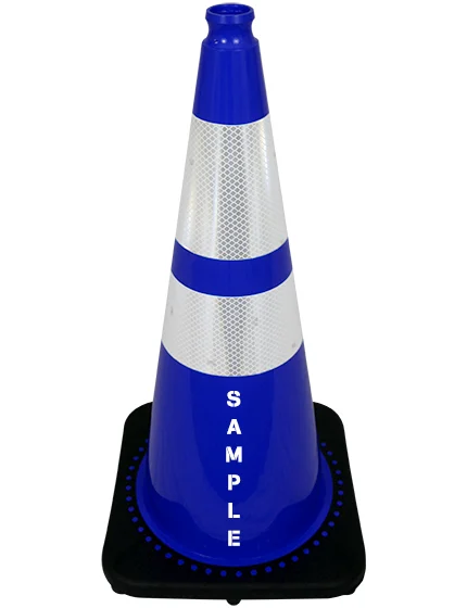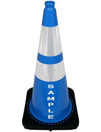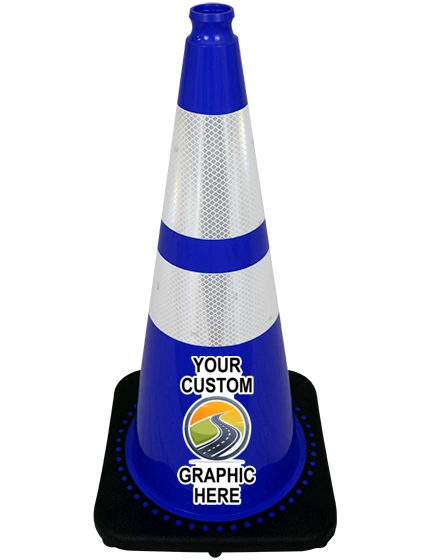 28" Blue Traffic Cone w/ 6" & 4" Reflective Collars w/ Full Color Graphic