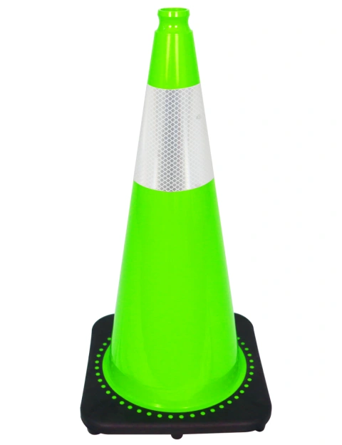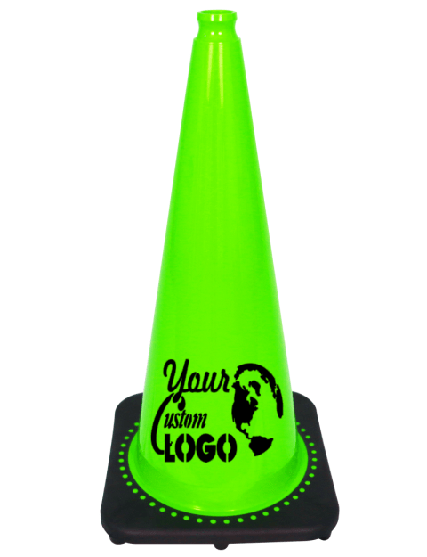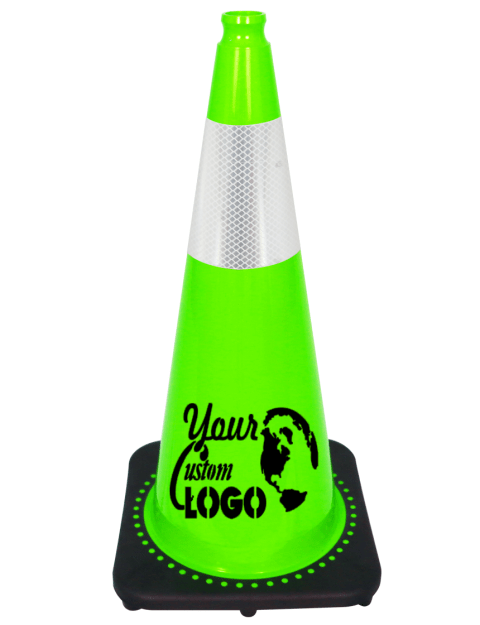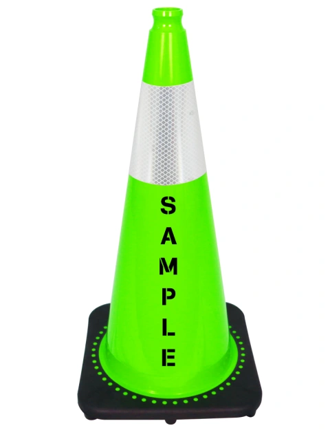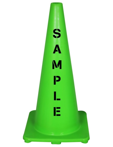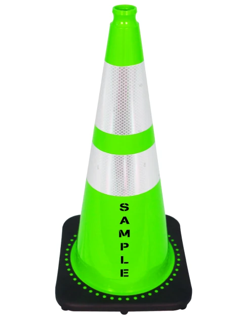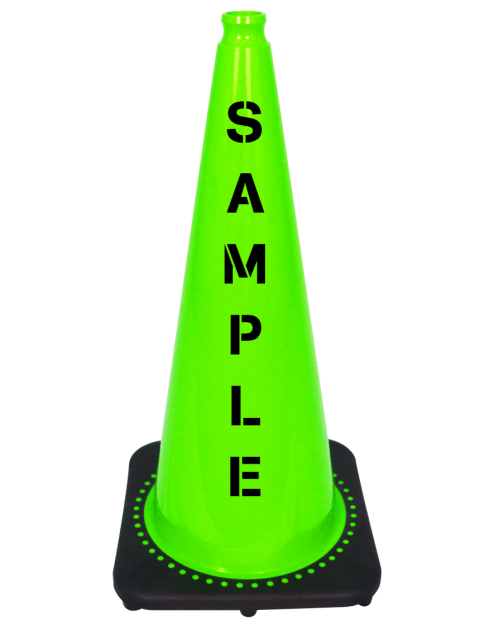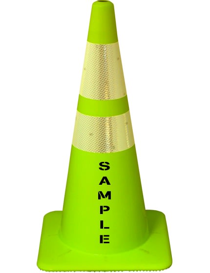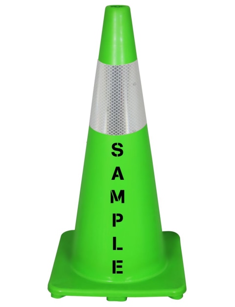 Lime 28" Traffic Cone w/6" & 4" Reflective Collars &Double Sided Custom Lettering