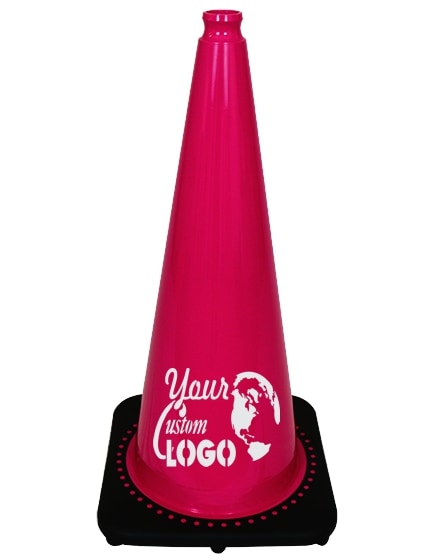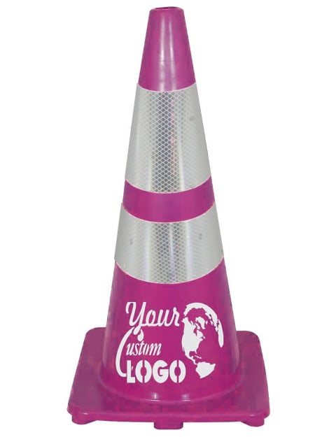 28" Pink Traffic Cone w/ 6" & 4" Reflective Collars w/ Full Color Graphic