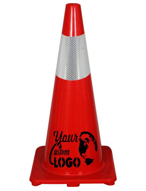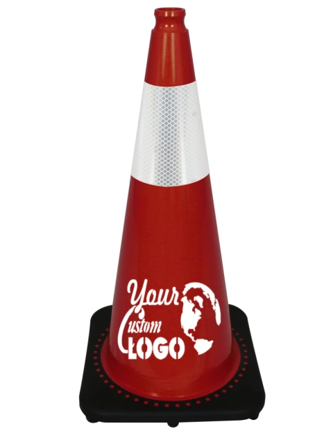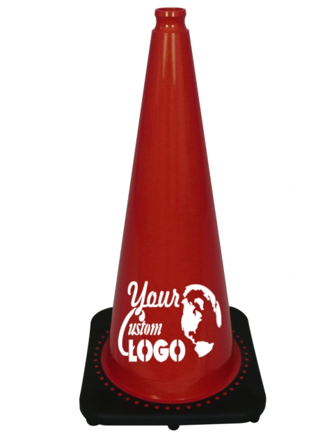 Red 28" JBC Traffic Cone w/One 6" Reflective Collar w/ Full Color Graphic