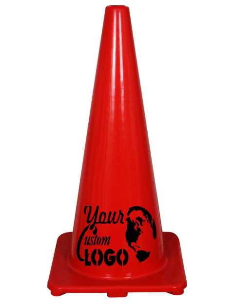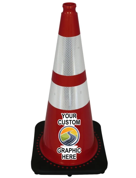 Solid Red 28", 5 lbs, Economy Cone w/ 6" Reflective Collar w/ Full Color Graphic