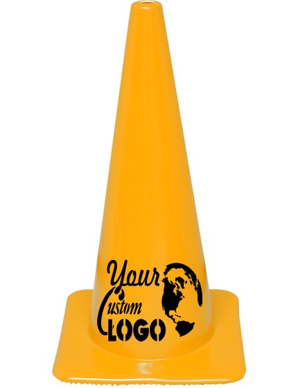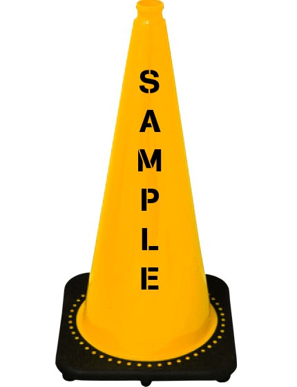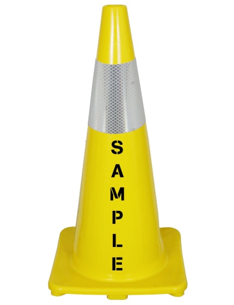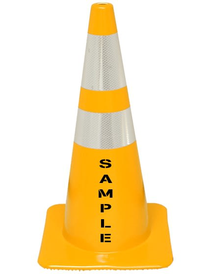 Solid Yellow 28", 5 lbs, Economy Cone w/ 6" Reflective Collar & Custom Lettering
