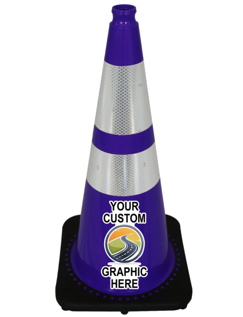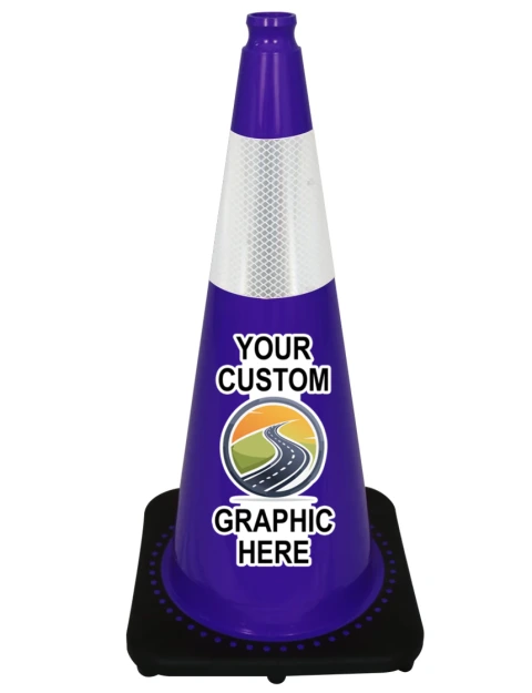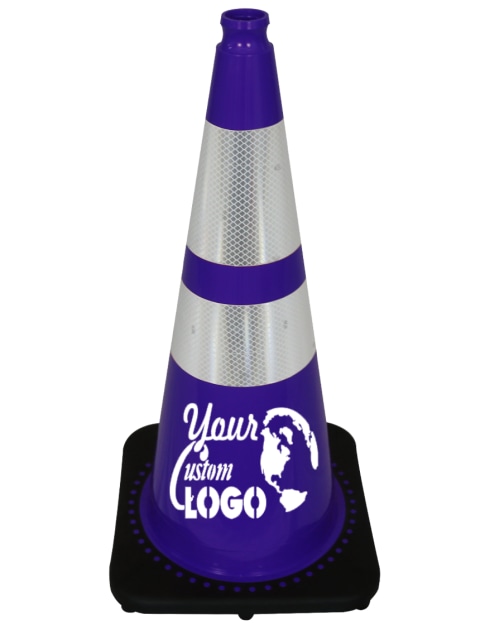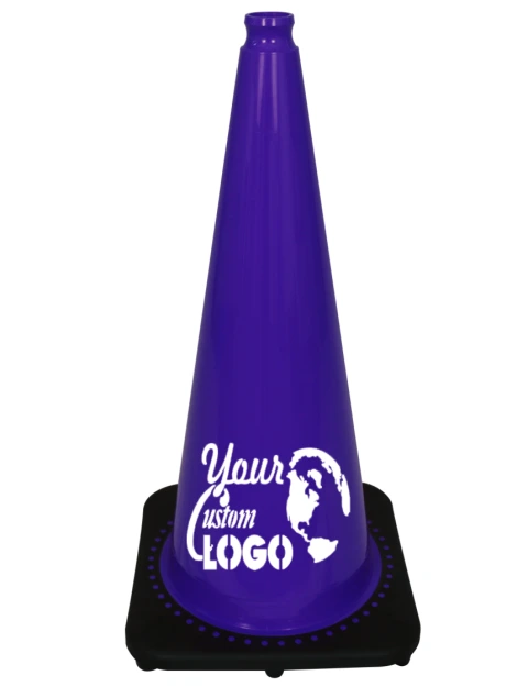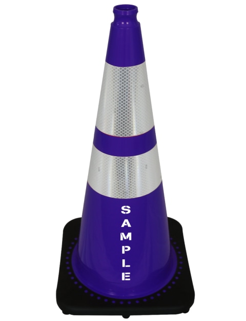 Solid Purple 28", 5 lbs, Economy Cone w/ 6" Reflective Collar & Custom Lettering