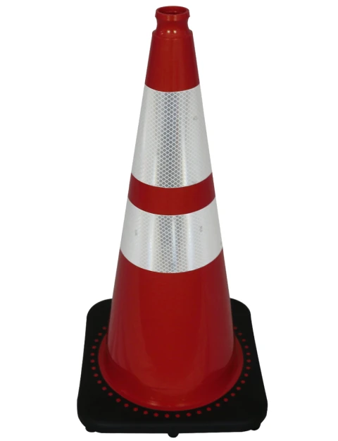 Red 28" JBC Traffic Cone w/ 6" & 4" Reflective Collars & Custom Lettering