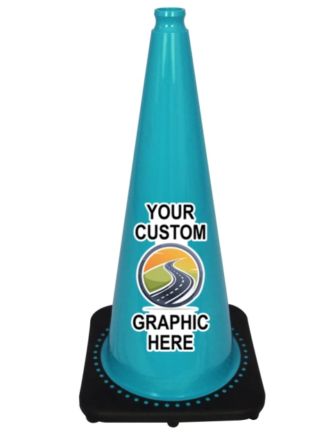 Teal 28" Traffic Cone w/ 6" & 4" Reflective Collars w/ Full Color Graphic