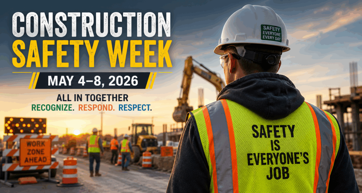 Construction Safety Week 2026 takes place May 4–8, 2026. According to the official Construction Safety Week organization, the 2026 theme is “All In Together”, with a focus on three key ideas: Recognize, Respond, and Respect. Learn more from the official Construction Safety Week website: ConstructionSafetyWeek.com.What Is Construction Safety Week?