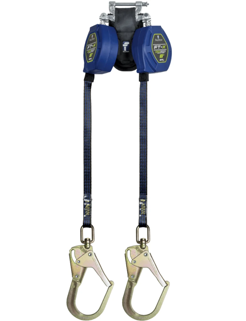 FallTech 8' FT-X® EdgeCore™ Class 2 Leading Edge Personal SRL-P, Twin-leg with Steel Swivel Rebar Hooks with SpeedLink™