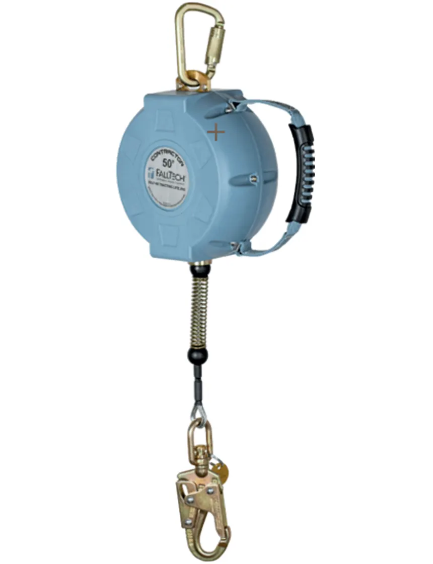 FallTech 727650C — Contractor C Class 1 SRL, 50' Galvanized Cable Built for tough jobs and everyday use, the FallTech 727650C is a Class 1 self-retracting lifeline (SRL) designed for traditional overhead anchorage. Its rugged glass-filled nylon housing and 3/16" galvanized steel cable deliver dependable performance, while the load-indicating swivel snap hook and included anchorage carabiner make setup fast and secure.Key Features & Benefits