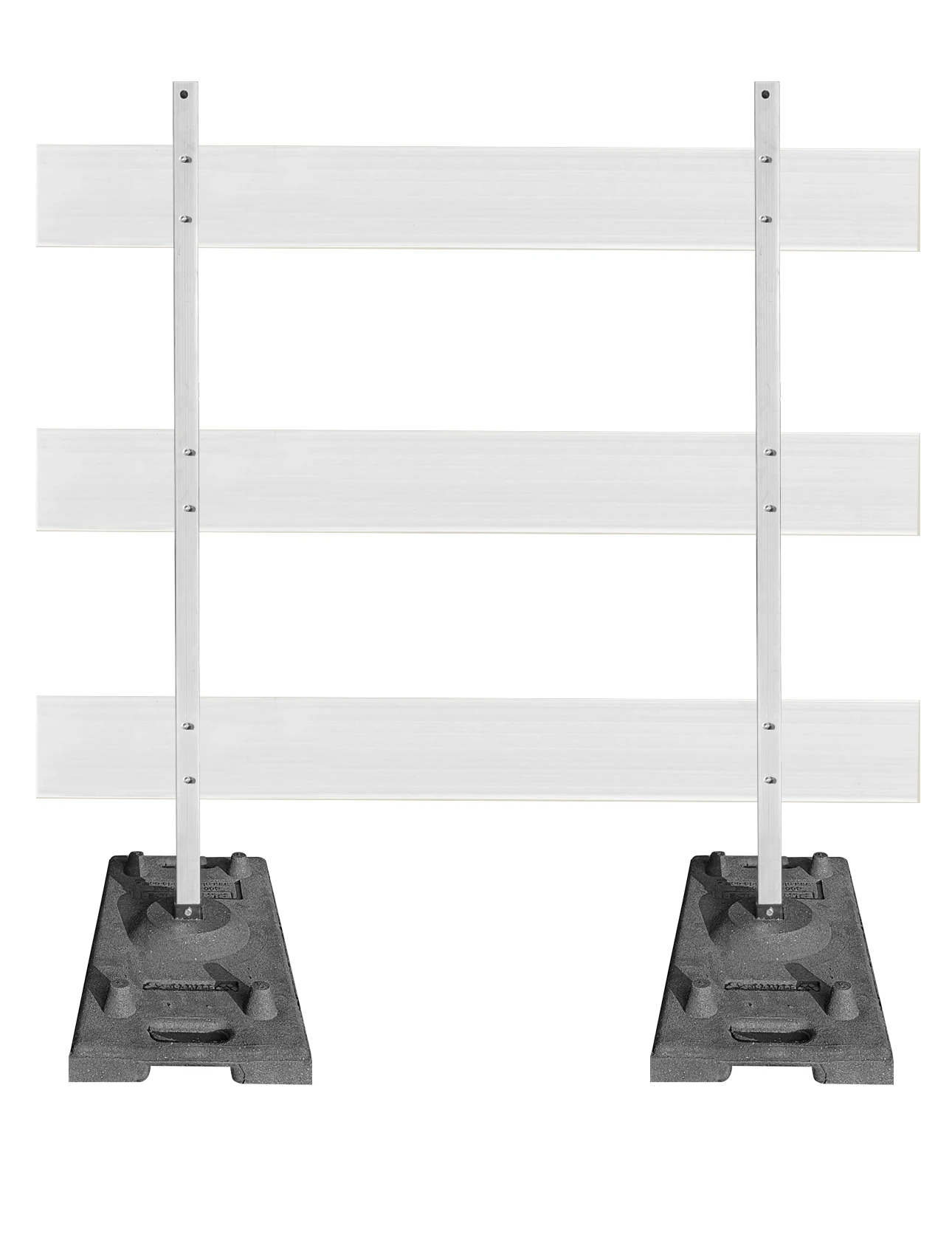 - Two (2) 30.125" x 14" Rubber Bases with Metal Plate Insert to accept uprights