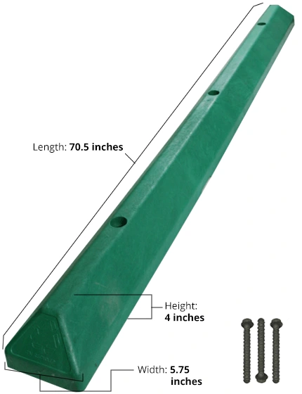 This 6-foot long high-quality plastic parking block is light weight, durable, and made from high-quality recycled plastic using an injection mold process. Installation is easy, in fact, it can be handled and installed by one person with ease-- no need to ask for help. Because Commercial Parking Blocks are made of recycled plastic they are also LEED qualified by the United States Green Building Council.