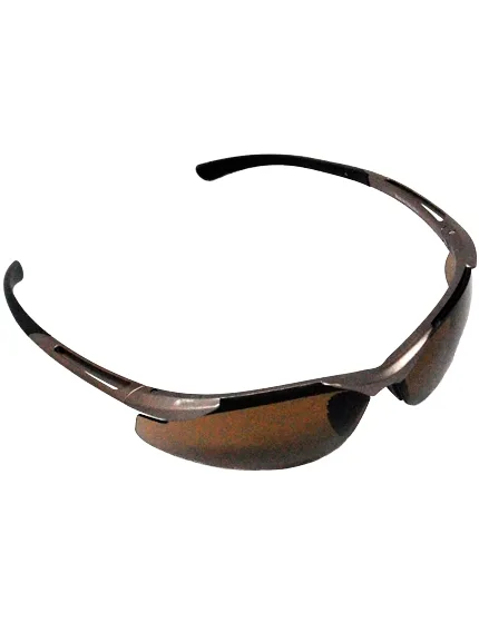 Contemporary champagne-colored frames with brown fog-resistant lenses that block out damaging sunrays. Safety sunglasses are made with flexible frames that withstand shock. Meets safety requirements for roadwork and highway maintenance. Also great for water activities like boating, water-skiing, or a day at the beach. Meets Safety Requirements: ANSI Z87+