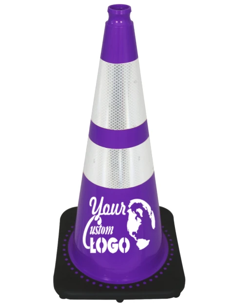 Solid Purple 28", 5 lbs, Economy Cone w/ 6" Reflective Collar & Custom Lettering