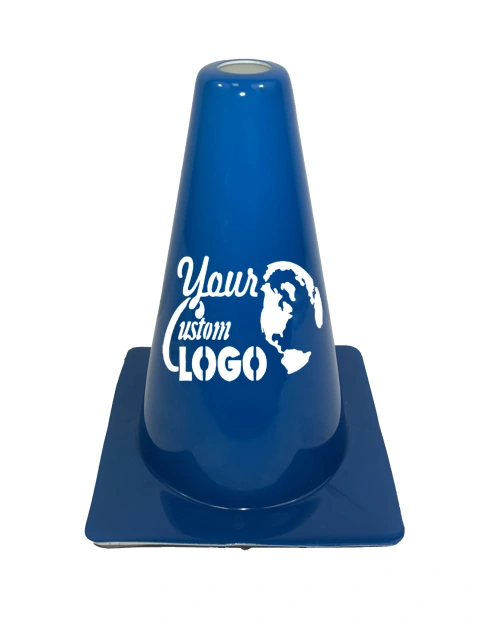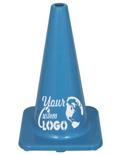 28" Blue Traffic Cone w/ 6" & 4" Reflective Collars w/ Full Color Graphic