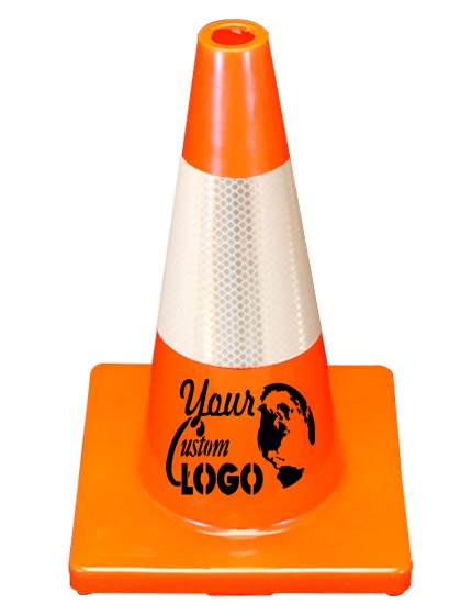 Red 28" JBC Traffic Cone w/One 6" Reflective Collar w/ Full Color Graphic
