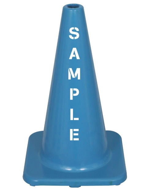 Light Blue 18" Cone w/ Black Base 6" Reflective Collar & Custom Lettering