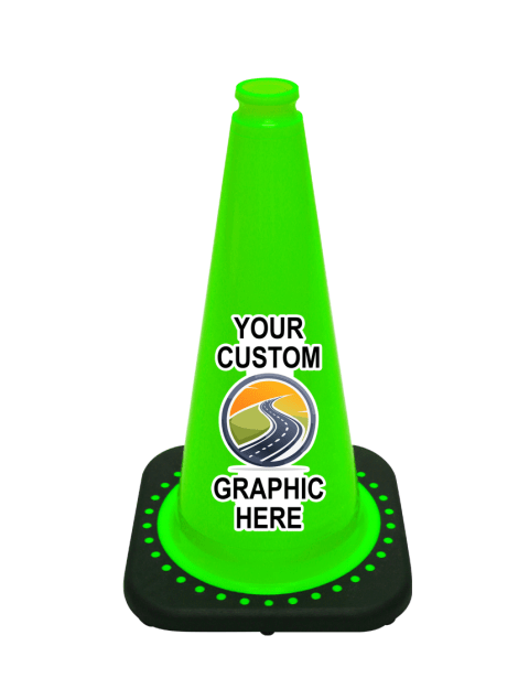 Lime Black Base 36" Cone w/ 6" & 4" Reflective Collars & Custom Lettering
