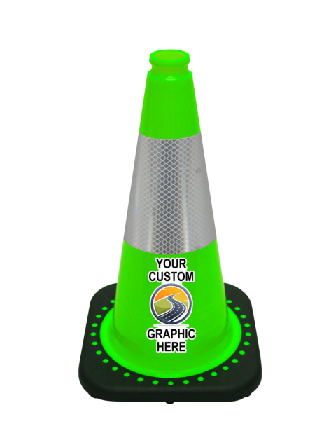 Yellow 28" Cone w/ 6" & 4" Reflective Collars w/ Single Color Graphic