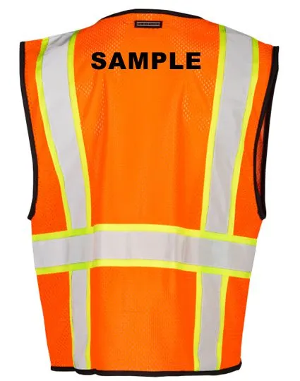 Orange, Class 2, Single Pocket, Contrasting Mesh Vest, Size: L-Xl w/ Black Custom Lettering