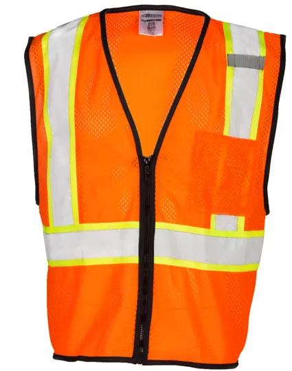 Orange, Class 2, Single Pocket, Contrasting Mesh Vest, Size: S-M