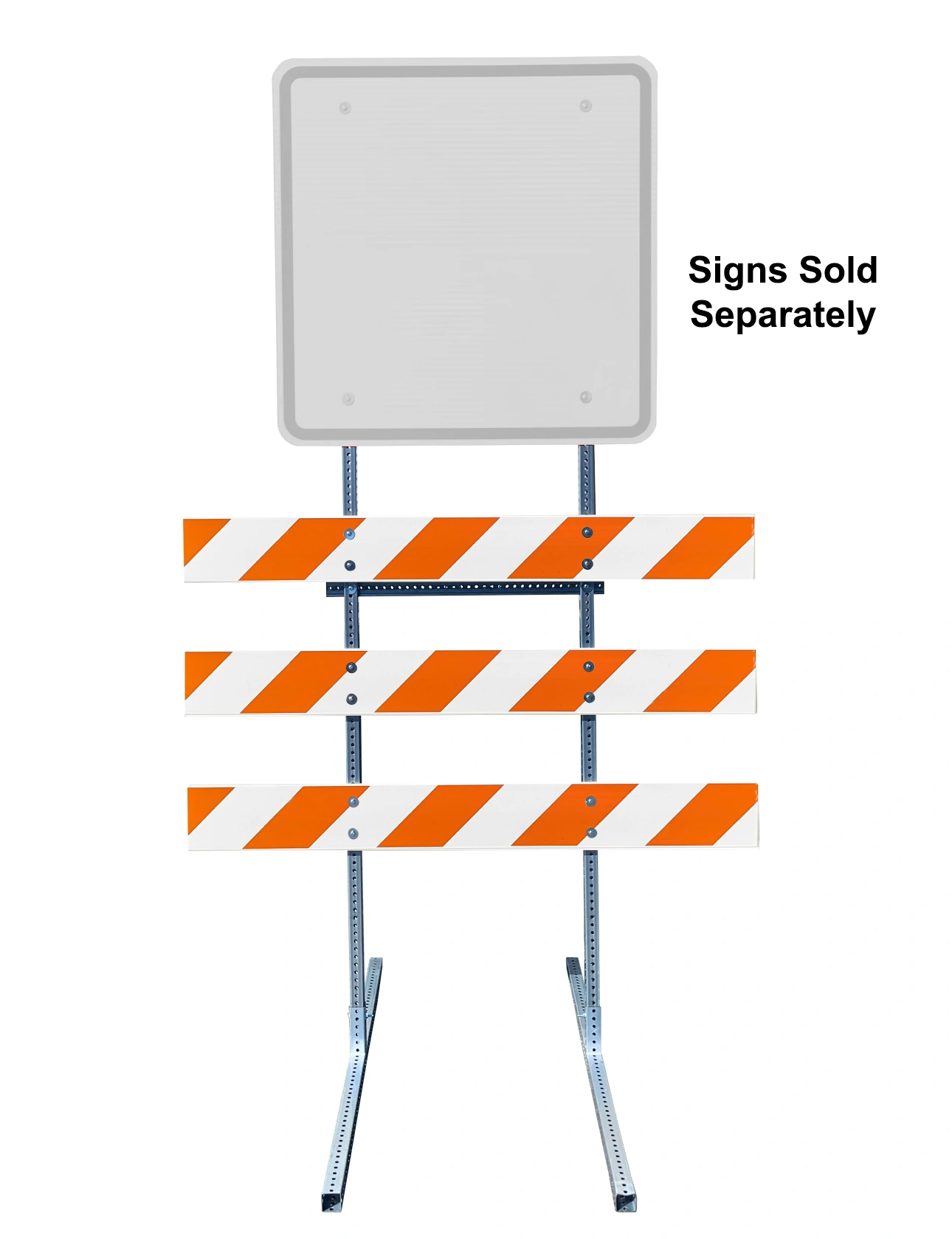 10' Tall, Type 3 Barricade Style Sign Holder with Three (3) 6' Double Sided Reflective Rails