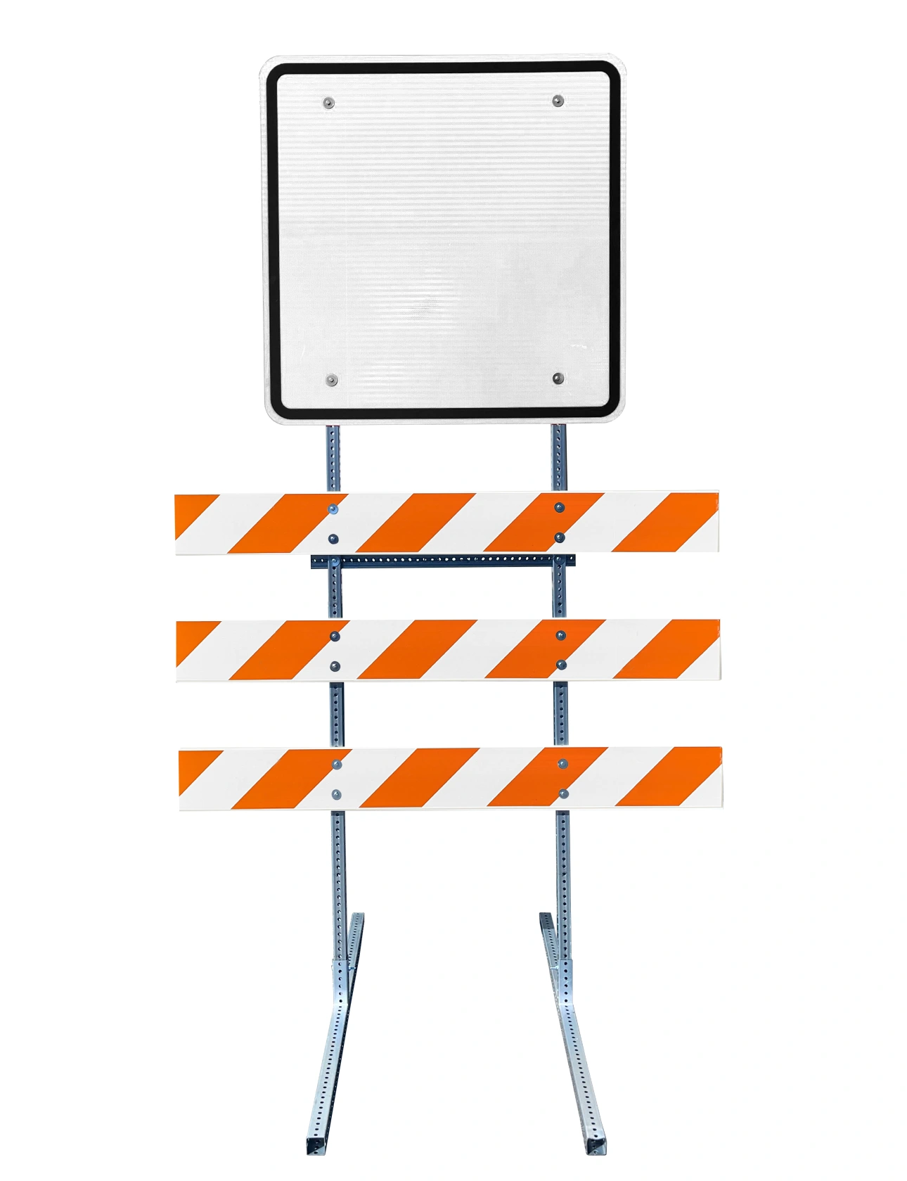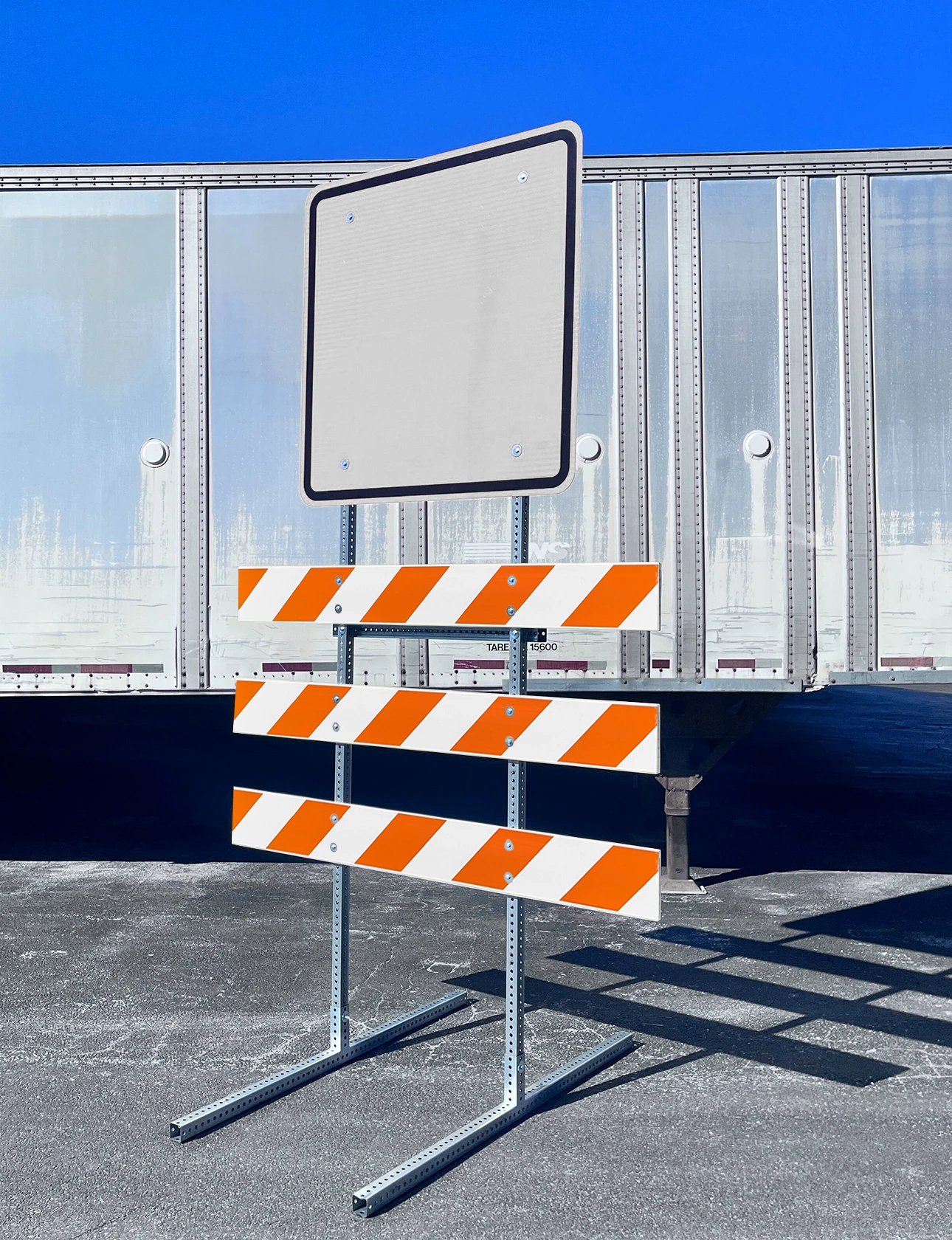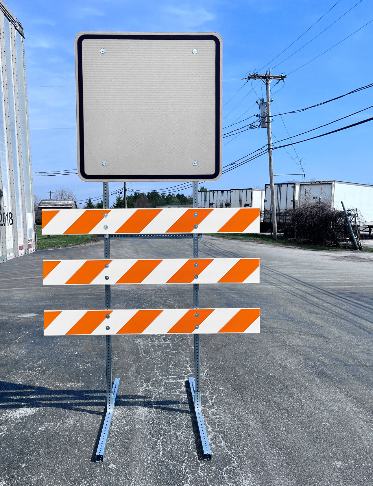 - Three (3) 8" x 1" Plastic Barricade Rails with orange and white HIP reflective sheeting