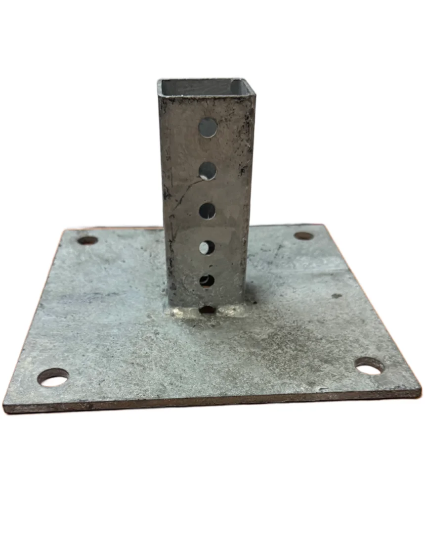 This galvanized square sign post anchor base delivers the ideal combination of strength, corrosion resistance, and easy installation, making it a go-to choice for surface-mounted sign installations. Built to last and simple to use, it helps keep your signage stable, visible, and secure in even the toughest conditions.