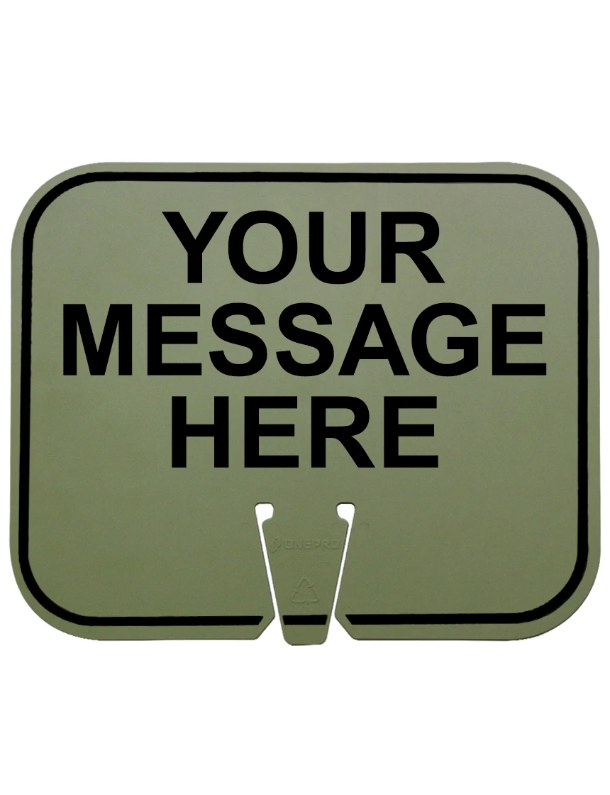 12 3/4" X 10 1/2", Non-Reflective Clip On Sign, Olive Drab w/ Custom Legend, Double Sided