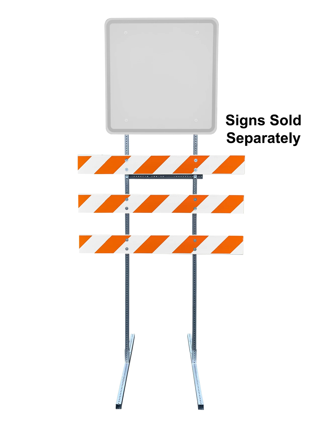 12' Tall, Type 3 Barricade Style Sign Holder with Three (3) 6' Double Sided Reflective Rails