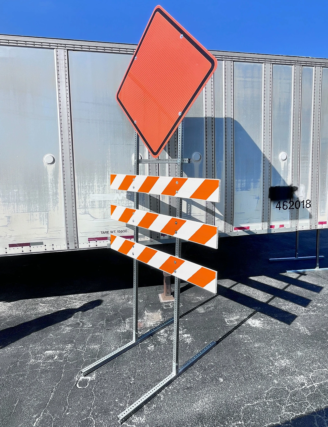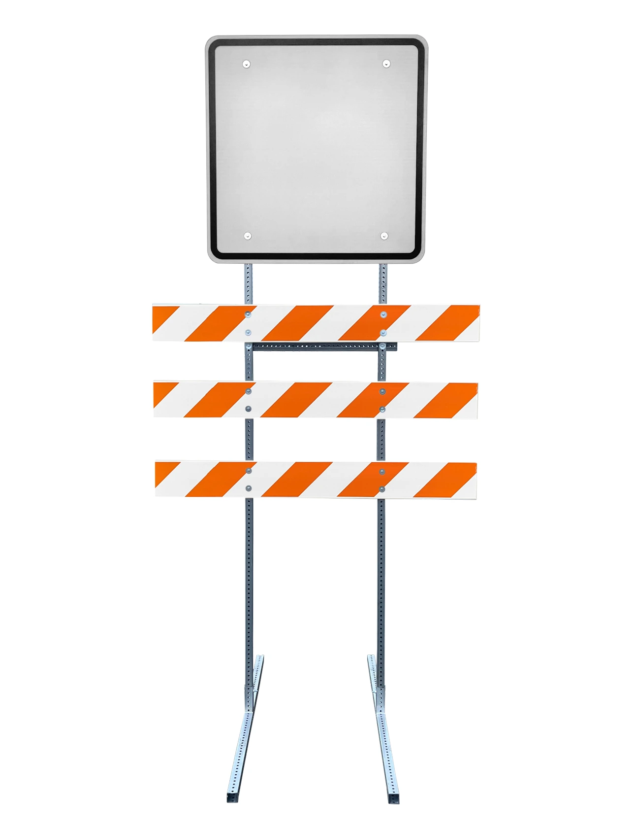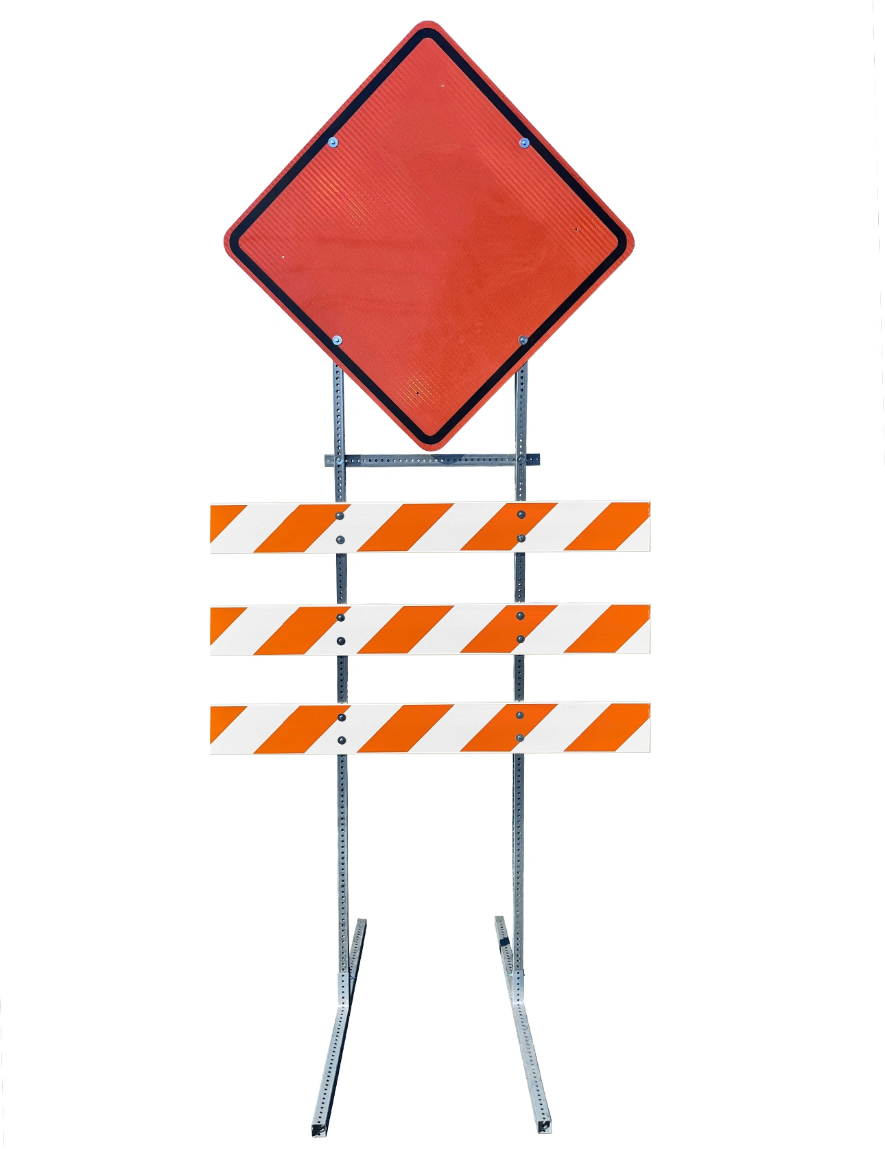 - Three (3) 8" x 1" Plastic Barricade Rails with orange and white HIP reflective sheeting