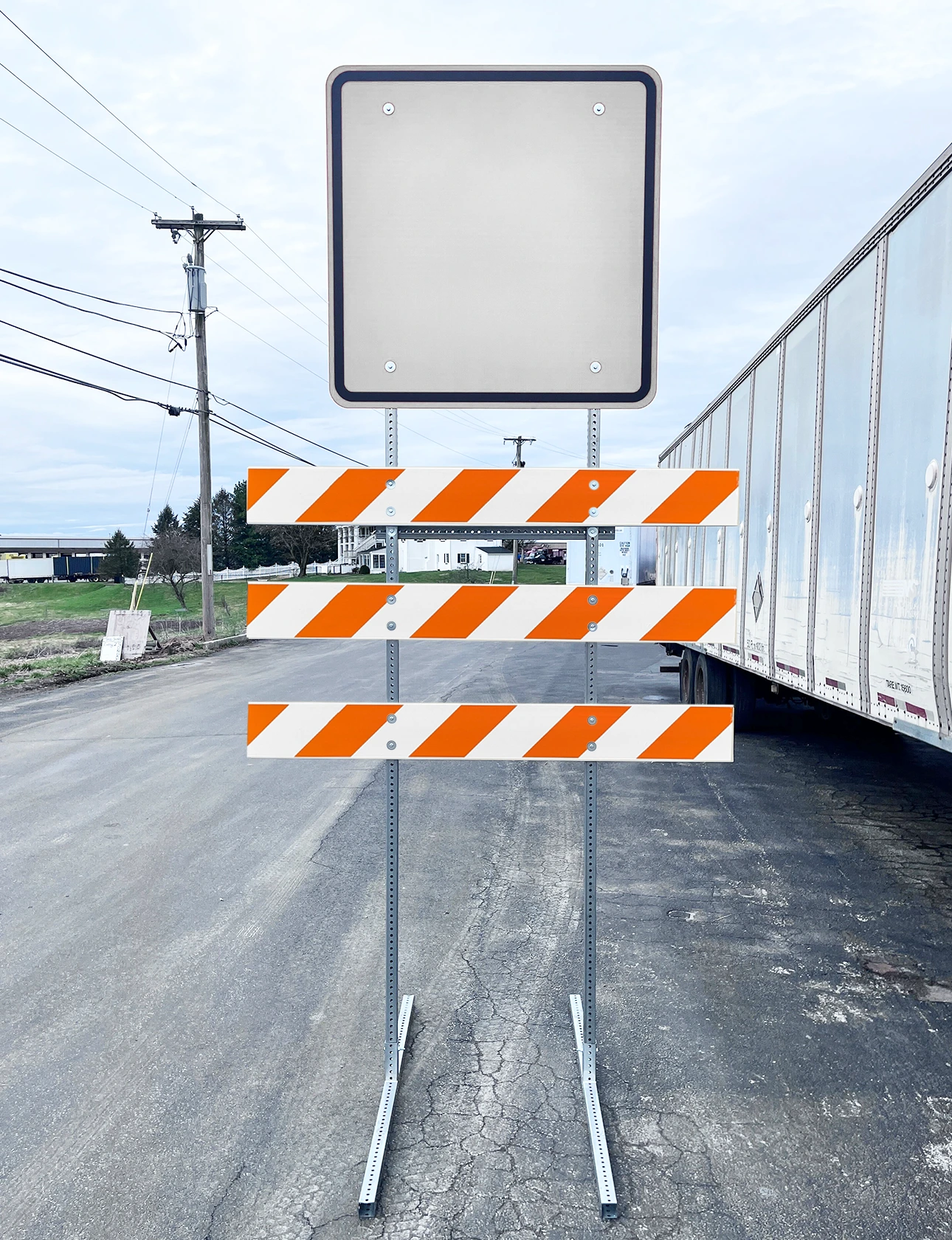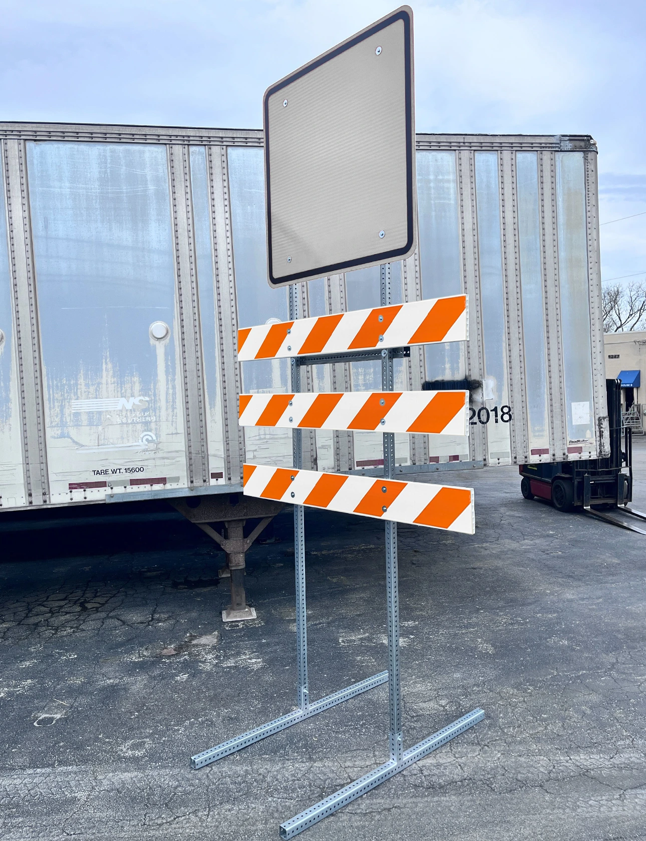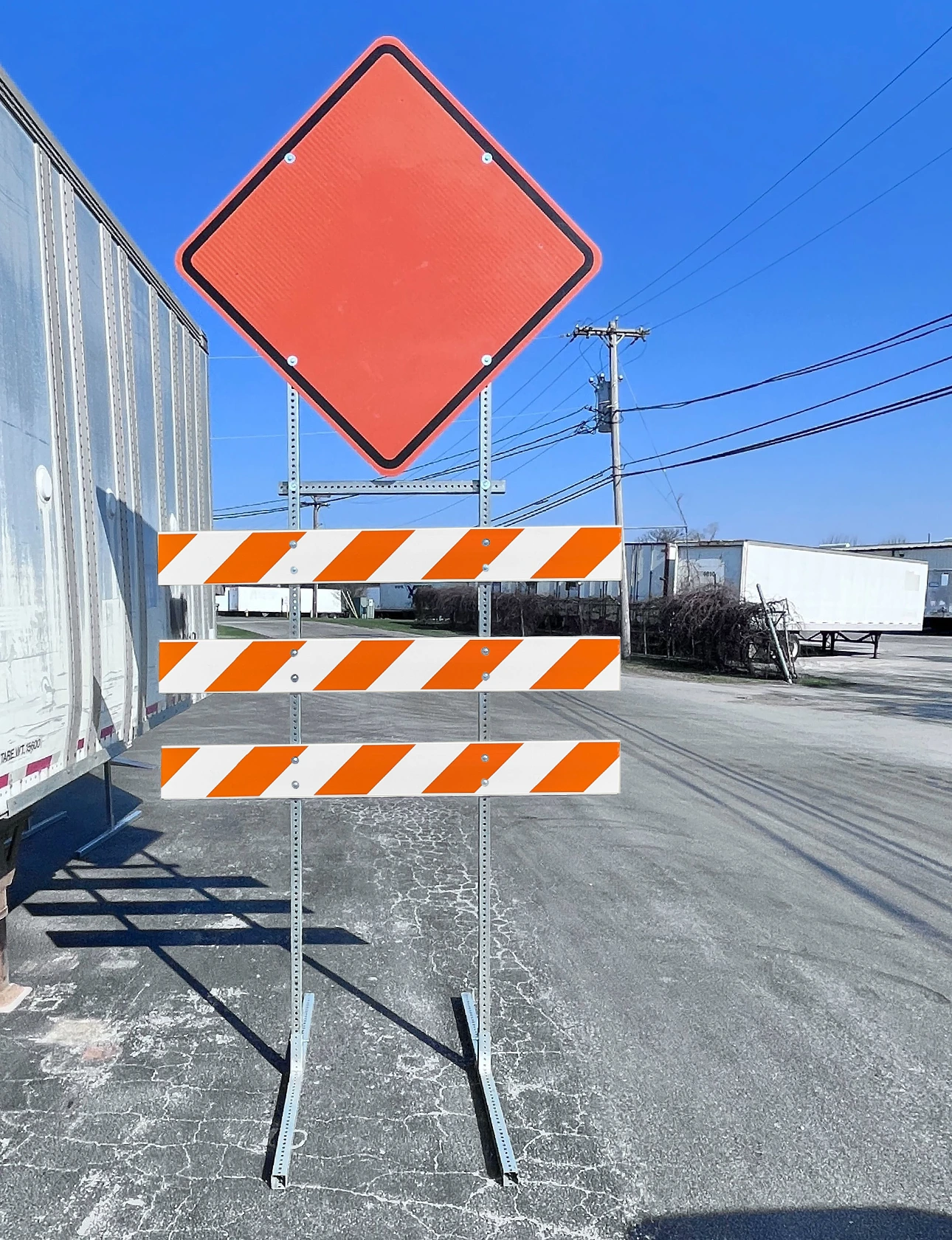 - Three (3) 8" x 1" Plastic Barricade Rails with orange and white HIP reflective sheeting