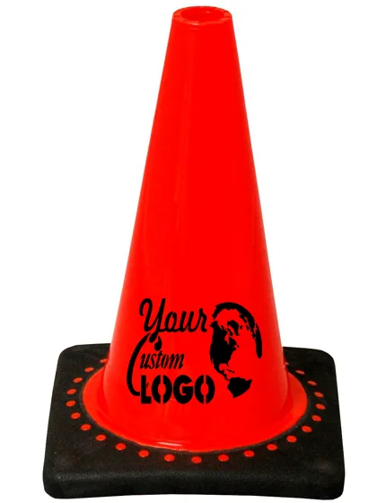 Sturdy and weather-resistant for job-site use, this product also makes a great sports or soccer cone that can be used on youth sports fields. Can be personalized with custom text and graphics. Our bright orange twelve inch orange traffic cone contains over 50 percent post-consumer materials and is fully recyclable. No setup charge for adding custom lettering or logos. In stock for immediate shipment