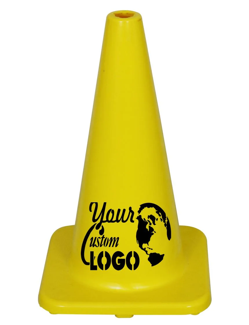 Solid Yellow 18" Economy Traffic Cone w/ Single Color Graphic