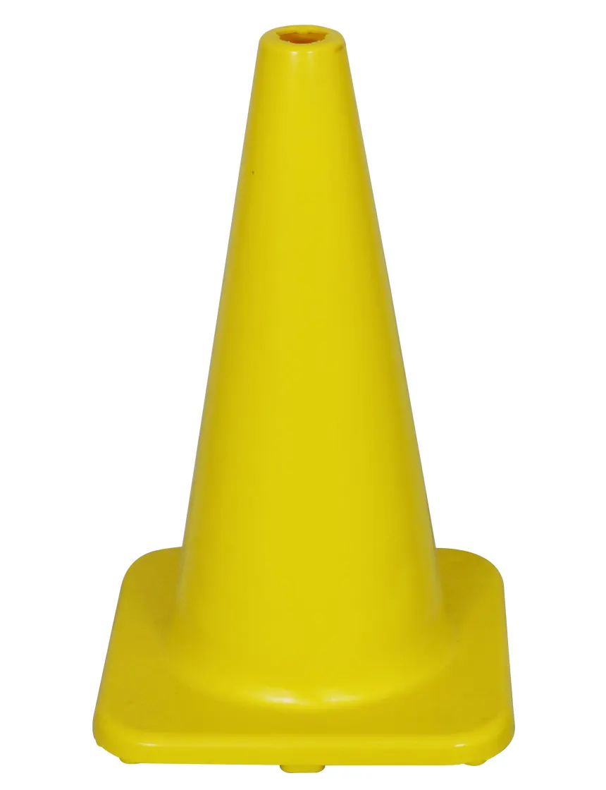 18" Economy Traffic Cones are a great cost effective traffic cone for a wide variety of uses. These bright colored traffic cones are injection molded PVC so they are both light weight and sturdy. Available in Orange, Lime, Blue, Yellow, Red and Purple. These 18 inch traffic cones are great for many factory applications, jobsites, parking lots, schools, and sports use, these cones are easy to stack, pick up, and move.