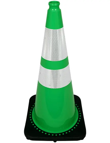 28" Green Traffic Cone w/ 6" & 4" Reflective Collars w/ Single Color Graphic