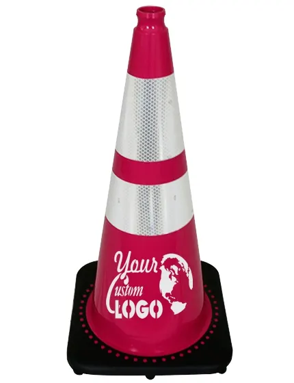 28" Pink Traffic Cone w/ 6" & 4" Reflective Collars w/ Single Color Graphic
