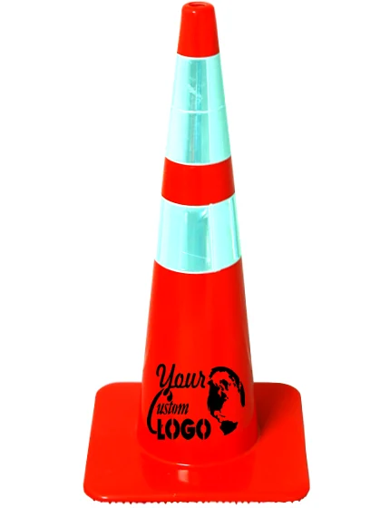 28 inch SlimLine Traffic Cones come in Brilliant fluorescent orange with UV inhibitors to prevent fading. This 28 inch orange cone is 100% PVC flow-molded using a one piece design - there are no seams to split or tear. SlimLine Traffic Cones are used when space is at a premium. SlimLine traffic cones are popular with crews trying to save space on a truck or rig and when storing. The Flow Molded design of these 28" orange traffic cones provides superior flexibility in heat and cold - these orange cones bounce back from an impact. 28" flow molded orange light traffic cones are available with one 6" and one 4" high-intensity reflective collars.