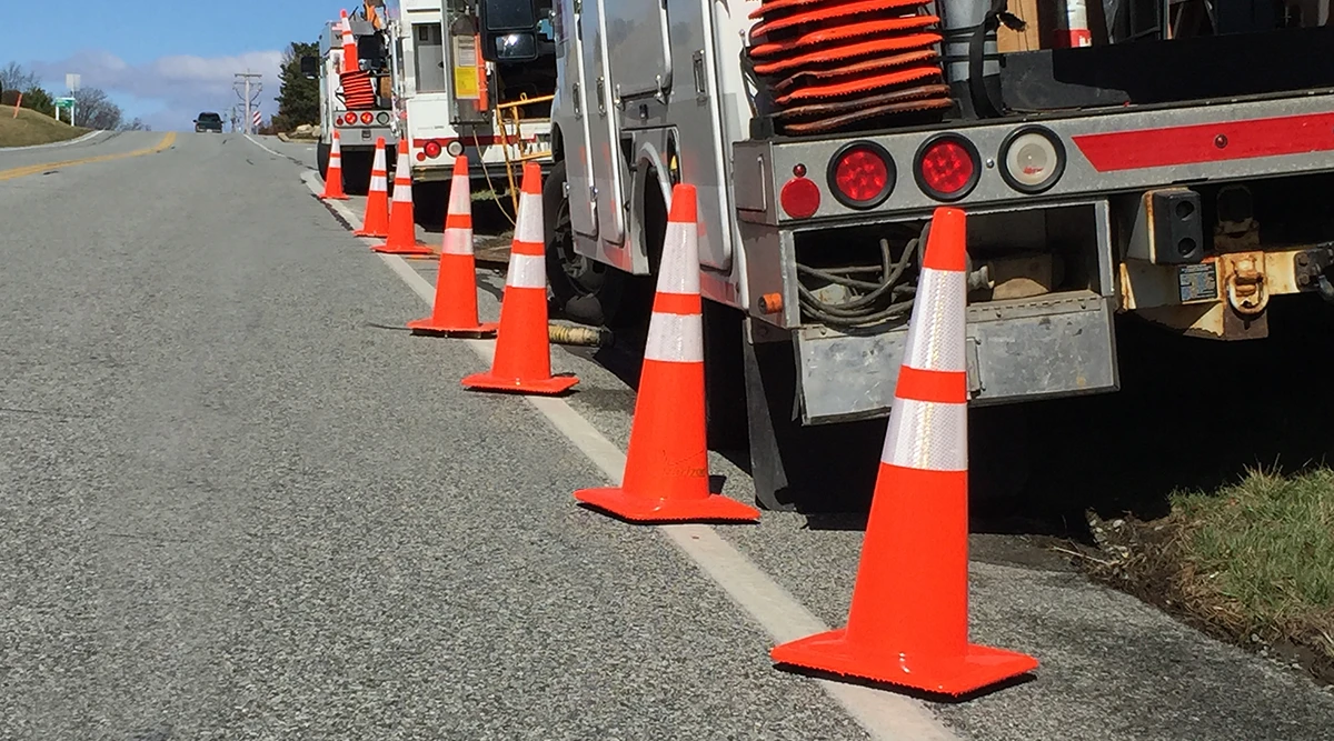 28 inch SlimLine Traffic Cones come in Brilliant fluorescent orange with UV inhibitors to prevent fading. This 28 inch orange cone is 100% PVC flow-molded using a one piece design - there are no seams to split or tear. SlimLine Traffic Cones are used when space is at a premium. SlimLine traffic cones are popular with crews trying to save space on a truck or rig and when storing. The Flow Molded design of these 28" orange traffic cones provides superior flexibility in heat and cold - these orange cones bounce back from an impact. 28" flow molded orange light traffic cones are available with one 6" and one 4" high-intensity reflective collars.