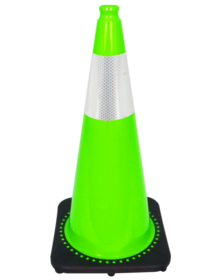Lime 28" 7 lbs JBC Black Base Traffic Cone w/ 6" Reflective Collar