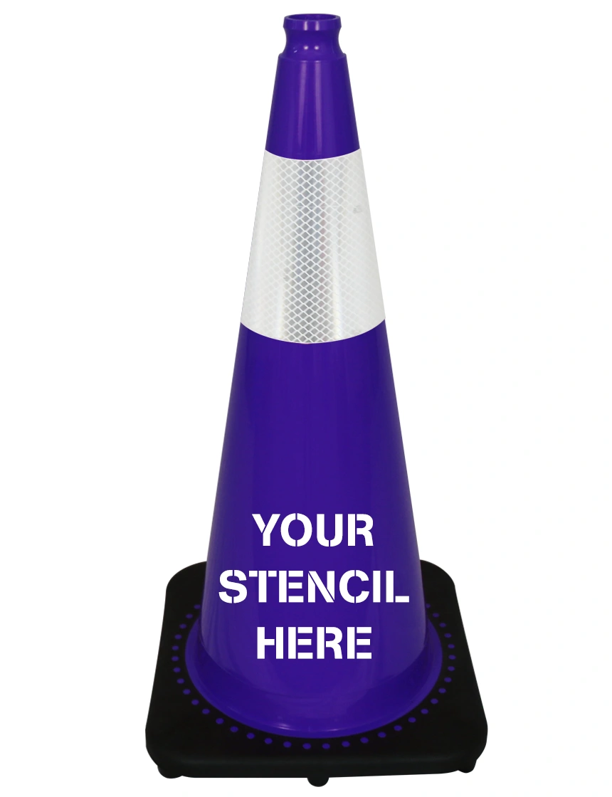 Purple 28" 7 lbs JBC Black Base Traffic Cone Single 6" Reflective Collar and Double Sided Lettering