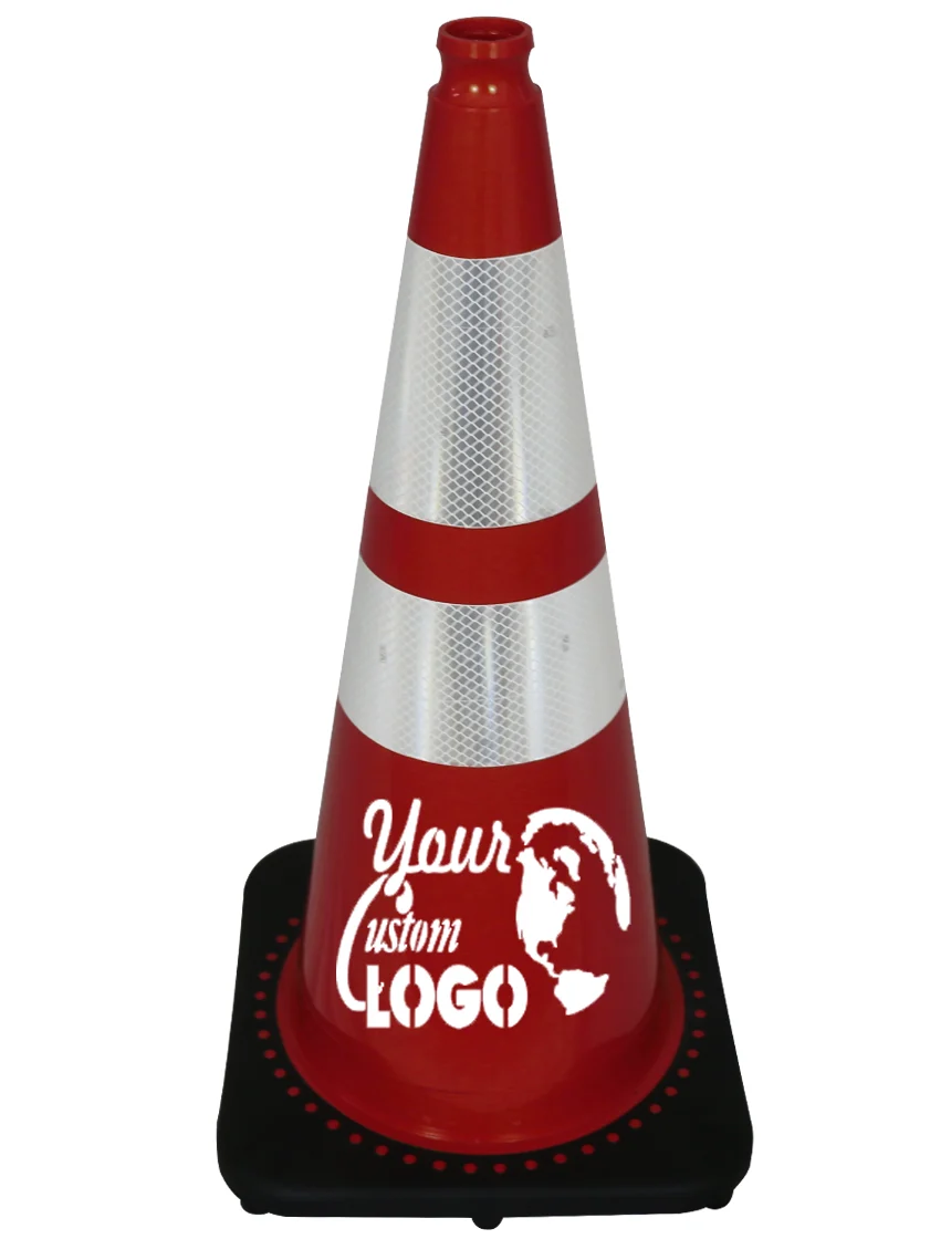 Red 28" JBC Traffic Cone w/ 6" & 4" Reflective Collars w/ Single Color Graphic