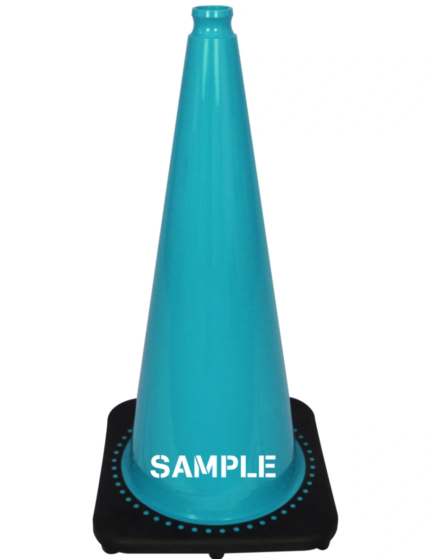 Teal 28" 7 lbs JBC Black Base Traffic Cone 6" & 4" Reflective Collars & Custom Lettering