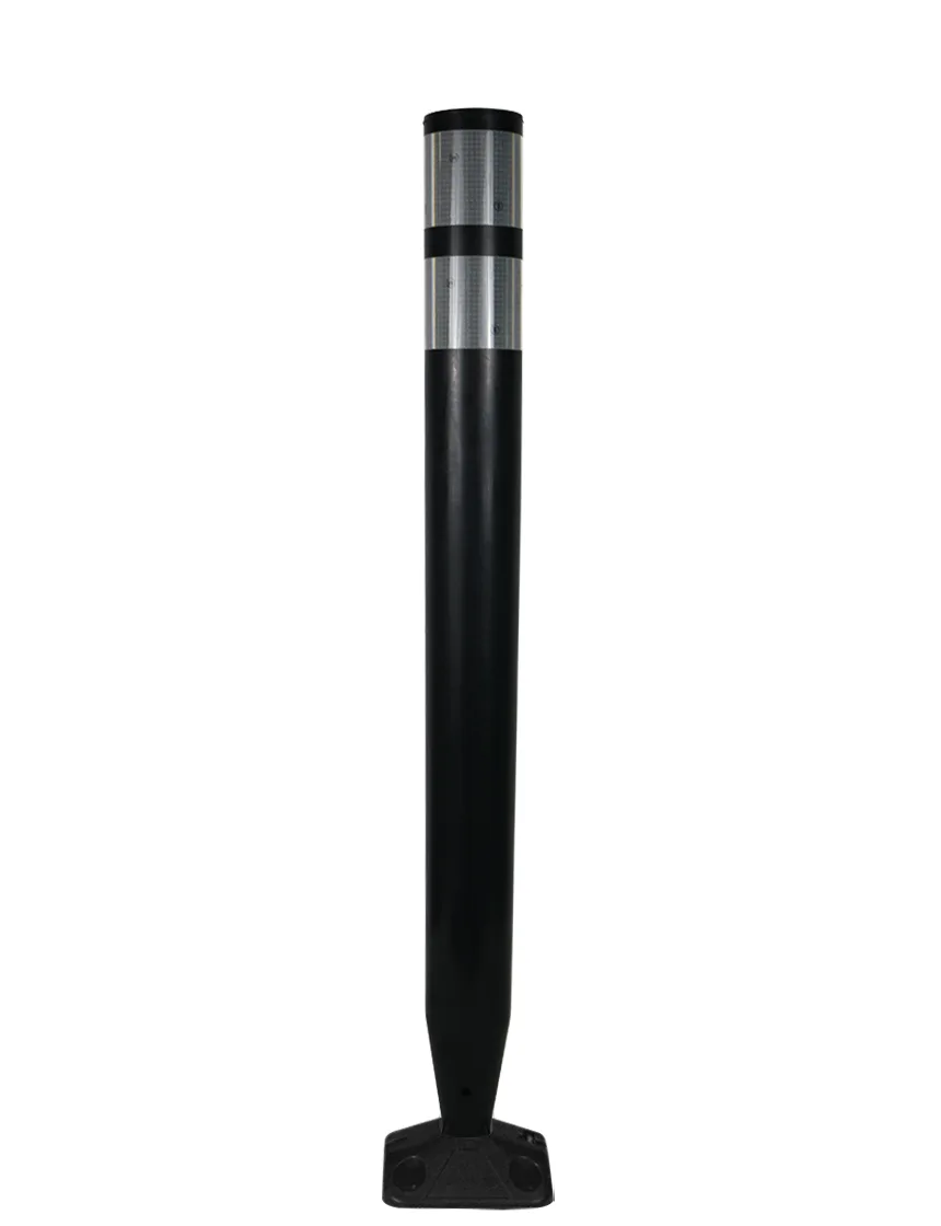 36" Black Round'U Flex' Delineator w/ 2 White Reflective Collars & Asphalt Mounting Hardware