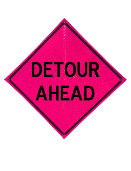 36" Heavy Duty, Pink Reflective Roll Up Sign, Detour Ahead