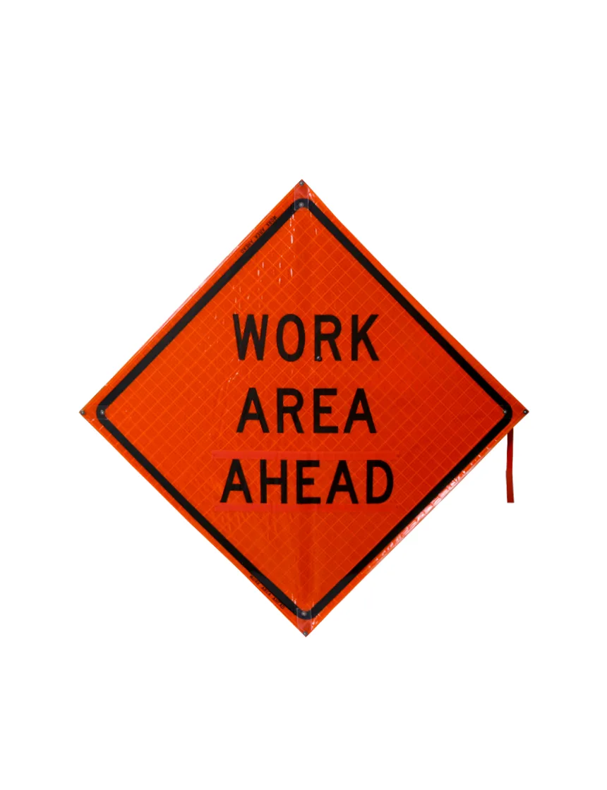 36", Heavy Duty, Reflective Roll Up Sign w/ Velcro For Overlays, Work Area Ahead