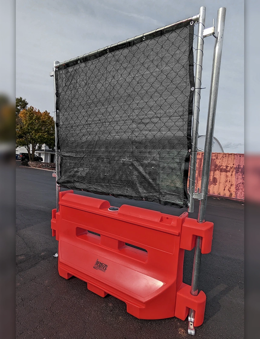 Red 36" Construction Barricade with OnePro Fence Panel & Black Privacy Fence