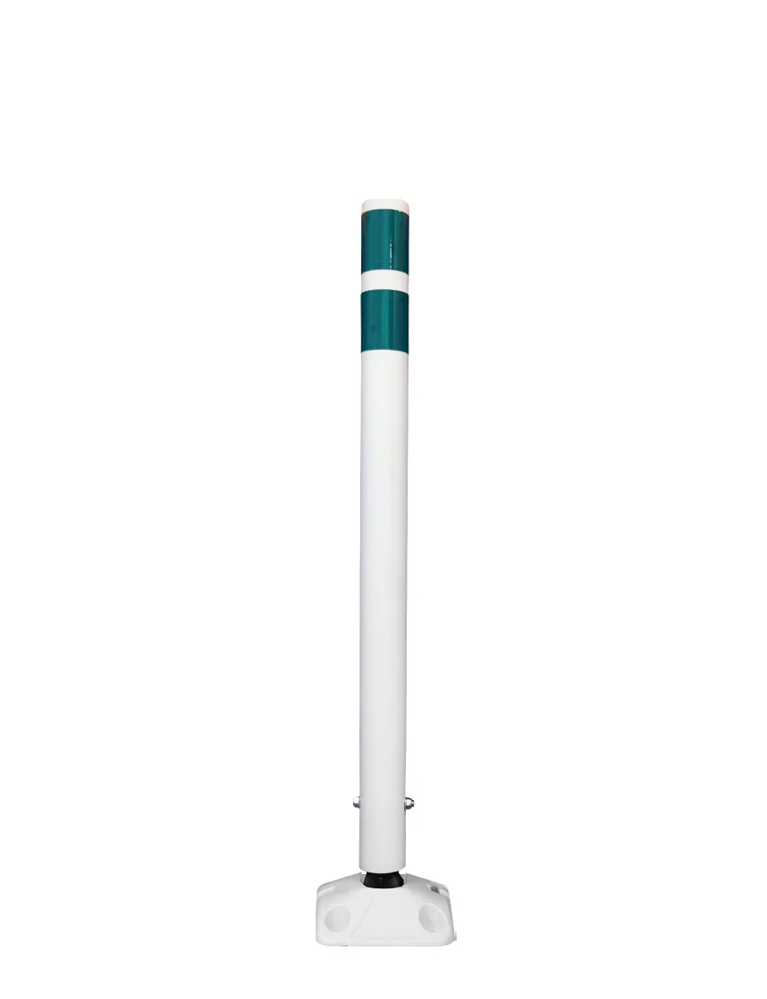 36" White Round Delineator w/ White Base & 2 Green Reflective Collars & Asphalt Mounting Hardware