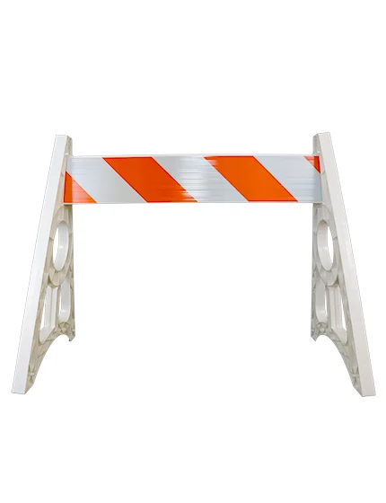 Our 4' Standard A-Frame Kit contains 2 injection molded barricade legs and a reflective rail that creates a complete Four foot Type I or Type II barricade. LED flashers can be installed on the bolt holes at the top of each leg. These sawhorse style barriers can be placed lengthwise, creating an inexpensive, effective and highly visible pedestrian barricade for property or workzones. Contains molded in lugs for easy stacking and storage. Approved for NCHRP-350 crash test rating.
